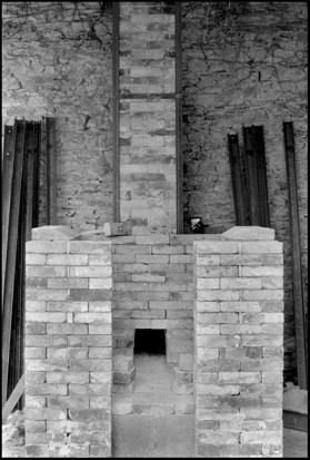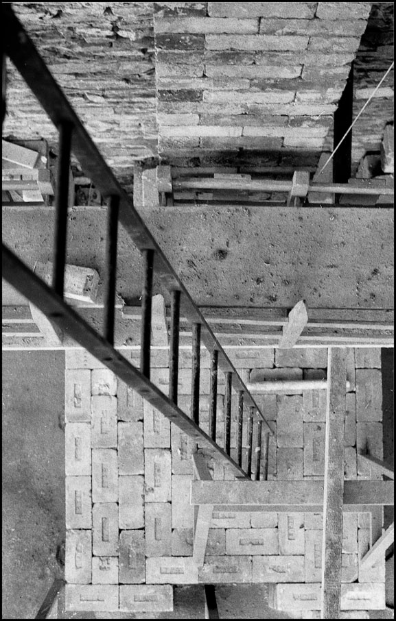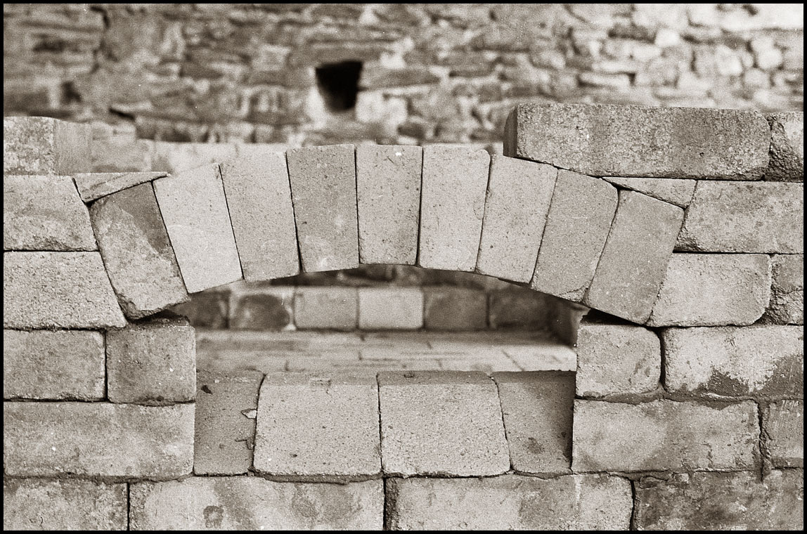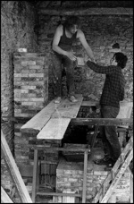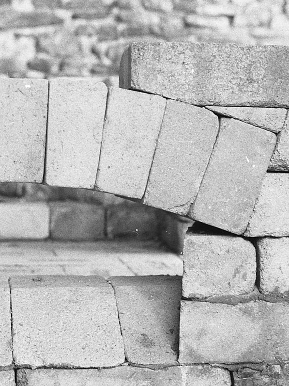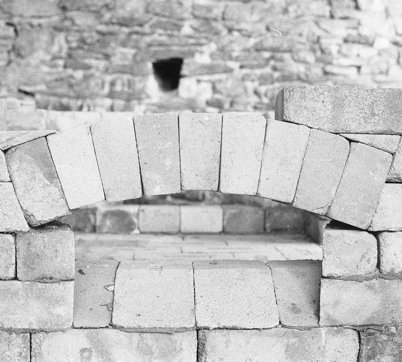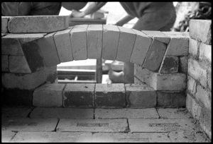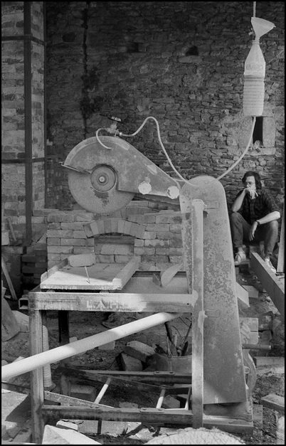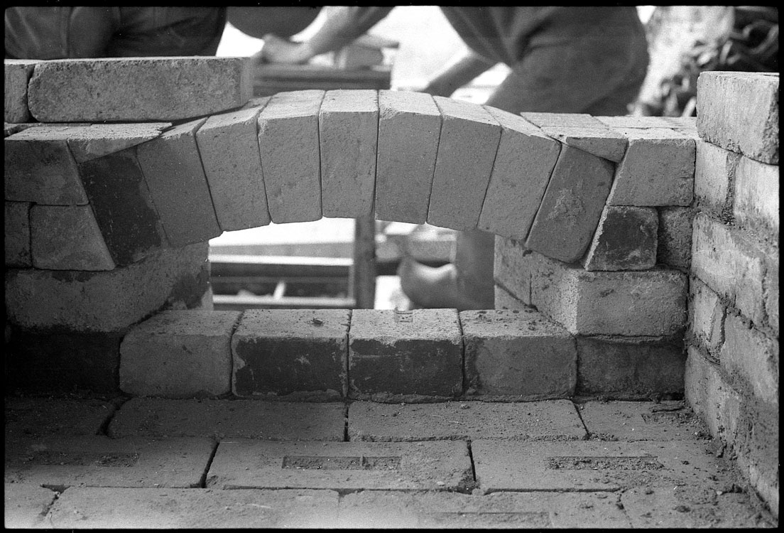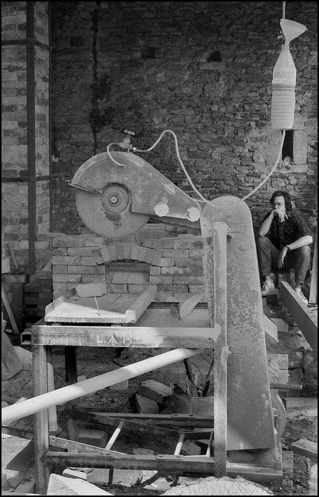 Des petites voûtes sont réalisées à l’aides de “couteaux” (briques de section trapézoïdale). Ajustements réalisés avec précision grâce a notre magnifique meuleuse.