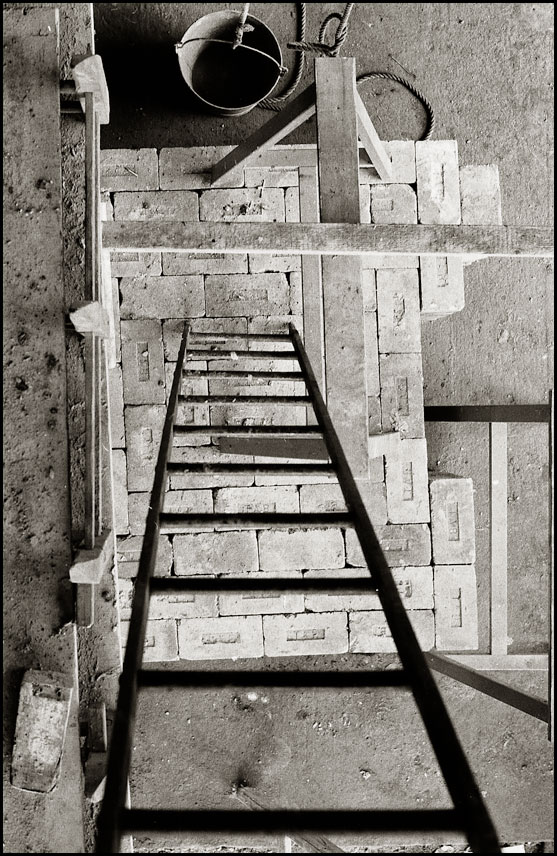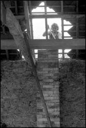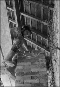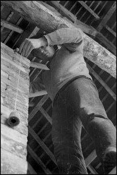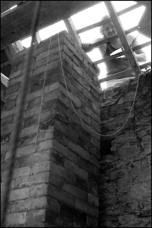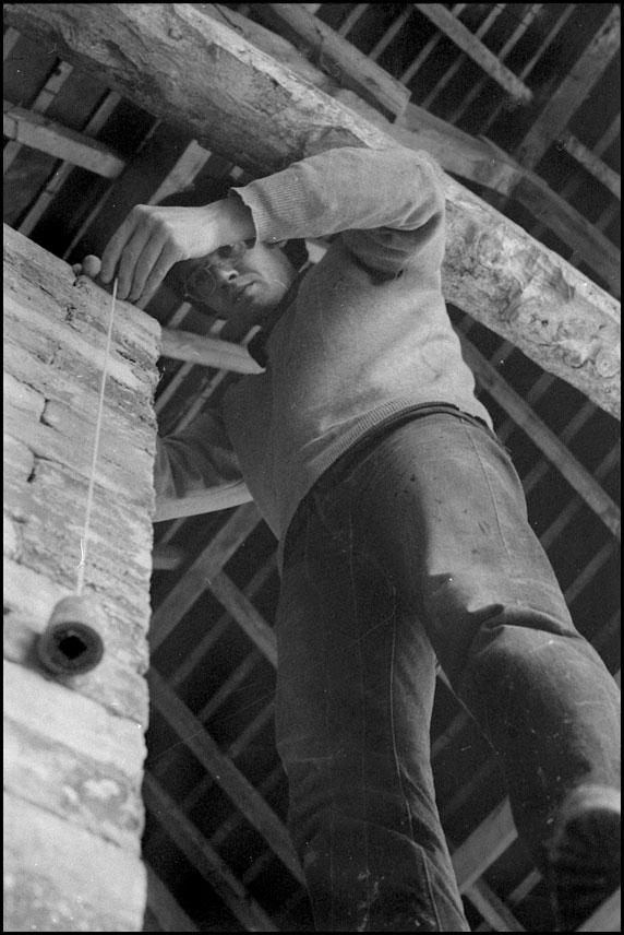 Jean -Luc vérifie, au fil à plomb, que l’ouvrage ne se prend pas pour Pise