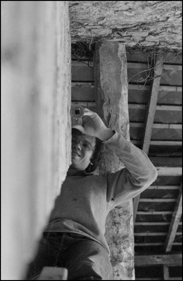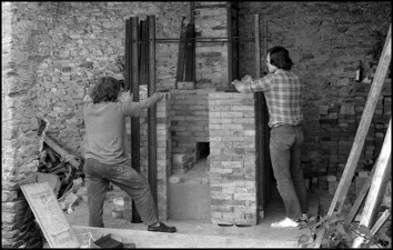 On échafaude avec les moyens du bord, tréteaux, planches de récupération et même le bât de Jeanette (l’ânesse).